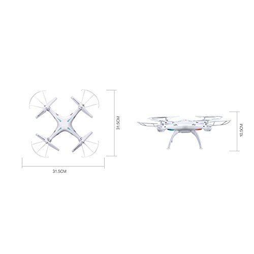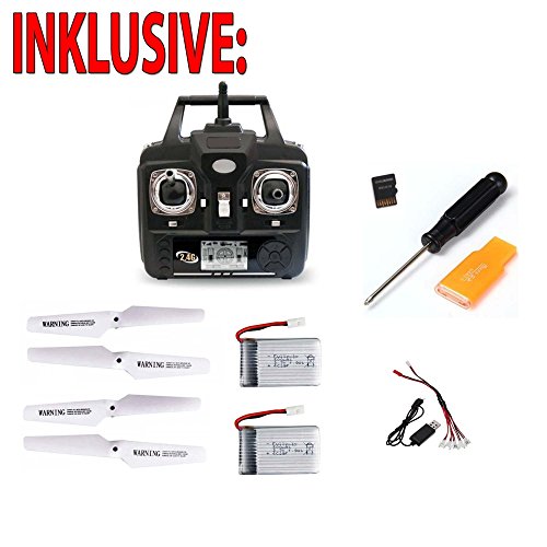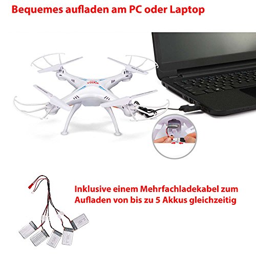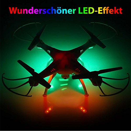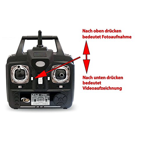 4.5 Kanal RC ferngesteuerter Quadcopter X5SC Explorers 2 Pro HD Nachfolger des Bestsellers X5C Jetzt Neu: Optional mit FPV (Live Übertragung auf Smartphone/Tablet)erweiterbar Dieser Quadcopter besitzt eine 4.5 Kanal Fernsteuerung mit 2.4GHz. Somit können Sie den Flieger – Hoch / Runter – Links / Rechts – Vorwärt / Rückwärts – Seitwärts links / Seitwärs rechts – 3D Flip-Funktion steuern. Der X5SC 2 PRO ist fertig montiert und die Elektronik ist bereits eingebaut und angeschlossen. Nur noch Akku laden, Batterien in den Sender und losfliegen. Das Modell verfügt über eine hochauflösende HD-Kamera, mit der Sie wundervolle Videos aus einem noch unbekannten Blickwinkel machen können Zudem verfügt dieser schöne Quadcopter über die neue HEADLESS und 6-axis Gyroscope-Technik für noch mehr Flugstabilität. FARBAUSWAHL ERFOLGT JE NACH VERFÜGBARKEIT! Hauptmerkmale: – Überarbeitete Version des X5C – Neuartige Headless-Funktion um den Einstieg für Anfänger zu erleichtern – Optional mit FPV-Kit erweiterbar (Live-Übertragung) – KIT Hier erhältlich: http://www.amazon.de/dp/B01AZFOZ0A – 2x LiPo Akku und Crash-Kit – HD-Kamera-Set – Neueste 2.4GHz und 6-Axis Gyro-Technologie – 3D-Flip Funktion – Automatische Motor-Stop Funktion und Akku-Warner – Blinkende LED's- Abmessungen: 315mm x 315mm x 50mm Lieferumfang: ACHTUNG: ZUBEHÖR ZUM TEIL UNTER DER PLASTIKABDECKUNG – Quadcopter X5SC 2 Pro HD – 2.4GHz Fernsteuerung – HD-Kamera-Set – 2x Li-Po Akku (Info: 1 Akku befindet sich bereits im Quadcopter) – Ersatzteile-Set – Deutsche Anleitung (per Email auch erhältlich: info@trendware24.net)